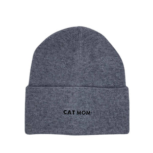 Cat Mom Embroidered Beanie Hat - Gray