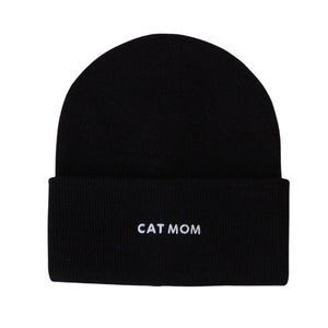 Cat Mom Embroidered Beanie Hat - Black